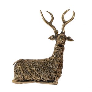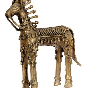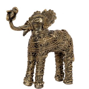 Dokra art, also known as ‘Bharai kaam,’ is an ancient brass sculpting technique employing the lost-wax casting method. Originating in the Indus Valley Civilization around 3500 BC, it includes a wide range of items from household goods to decorative figurines. Dhokra craftsmen, or ‘Dhokra Shilpis,’ use brass or bronze alloys to create intricate pieces like ornaments and figurines. This art form transcends gender barriers, with artisans passing down their skills through observation and guidance. Today, artisans in Betul continue to preserve and innovate this tribal art, drawing inspiration from local folklore, nature, and spirituality.