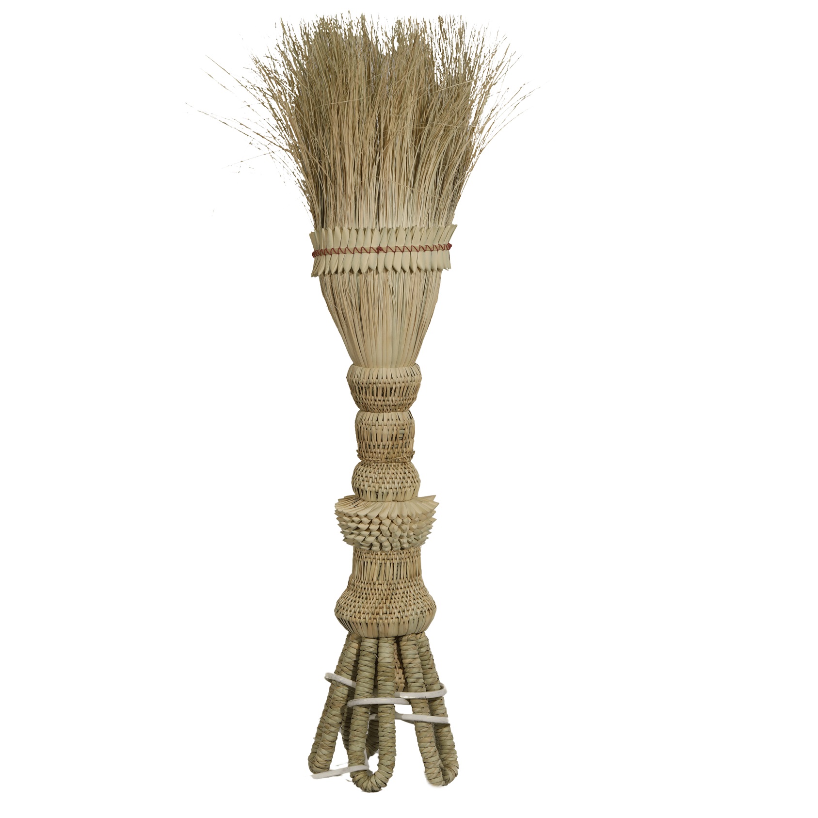 Kanta’s journey into the world of art began unexpectedly when her husband boarded a train to sell brooms made from the leaves of the khajoor tree, a skill passed down through generations in his family. On this particular day, their lives took a new turn when a government official noticed the unique designs and quality of their brooms and offered support to market them. Encouraged by this opportunity, Kanta decided to explore new avenues for their craft, using similar techniques to create other beautiful products